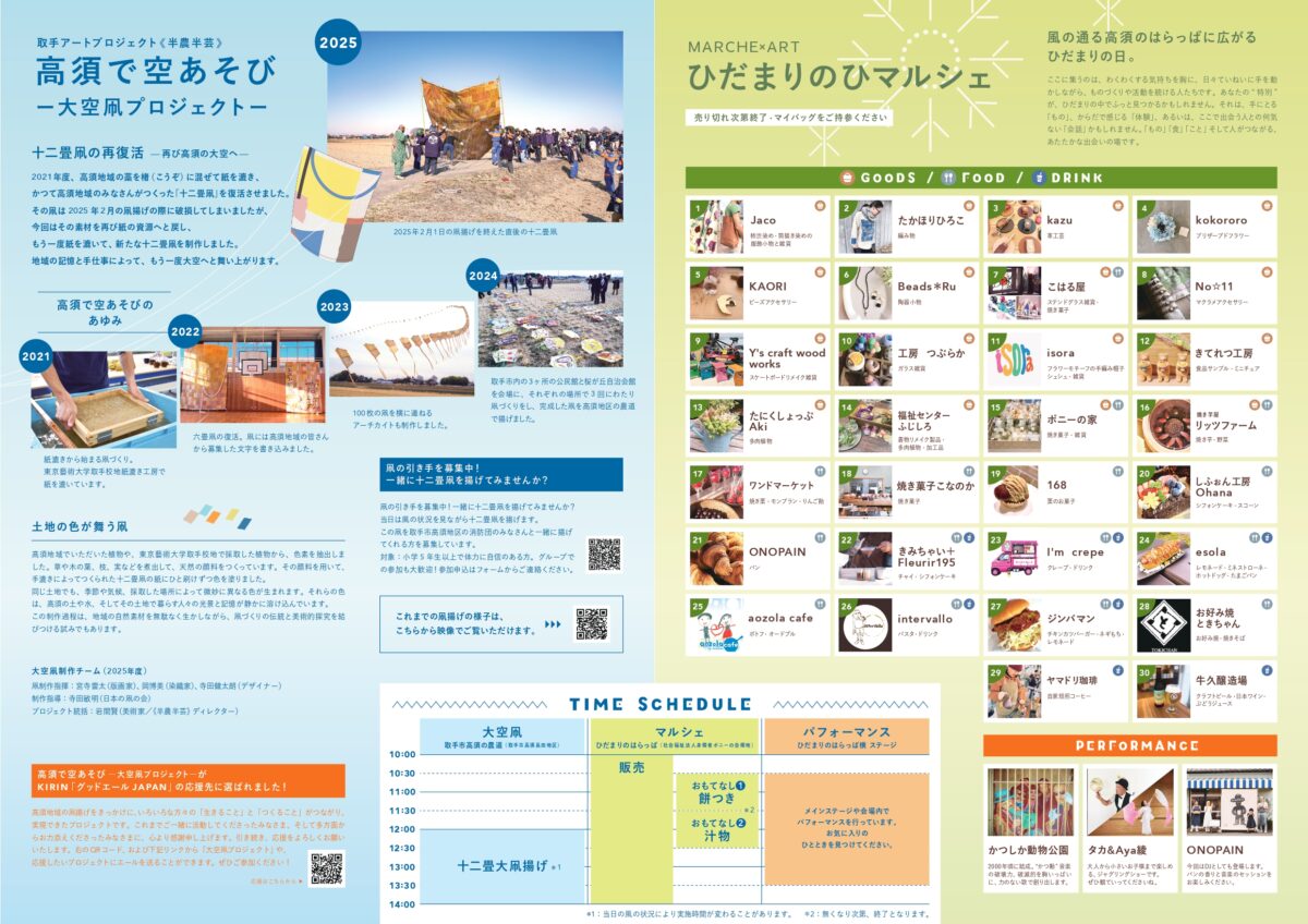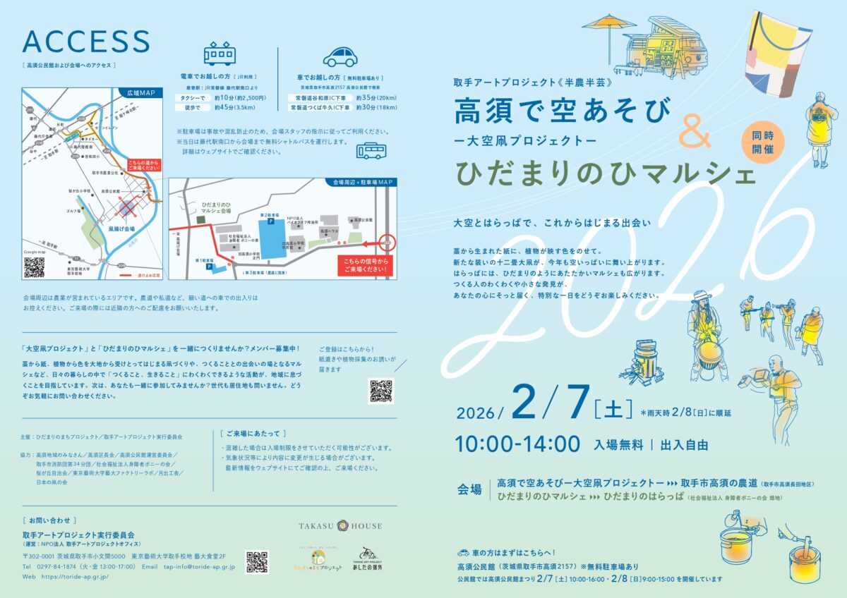 協力:高須地域のみなさん/高須区長会/高須公民館運営委員会/取手市消防団第34 分団/社会福祉法人身障者ポニーの会/桜が丘自治会/東京藝術大学藝大ファクトリーラボ/月出工舎/日本の凧の会