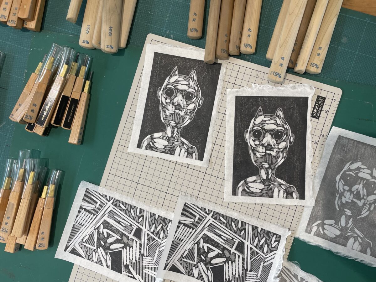 内 容:紙に印刷する際、私たちは普通「刷る」と書きますが、伝統木版の世界では「摺る」を用います。「手」が「習う」と書いて「摺」。手が主体となり、手が考えることを表す、素敵な言葉です。この講座では、まず自分の手で和紙を「漉く」ことから始まります。そして版を「彫り」、最後に絵柄を「摺る」。そのすべての工程が、「手」による営みです。静かに手を動かしているうちに、いつの間にか何かが生まれている。それを「木版画」と呼んでみる。そんな、静かで濃密な一日を体験してみませんか。