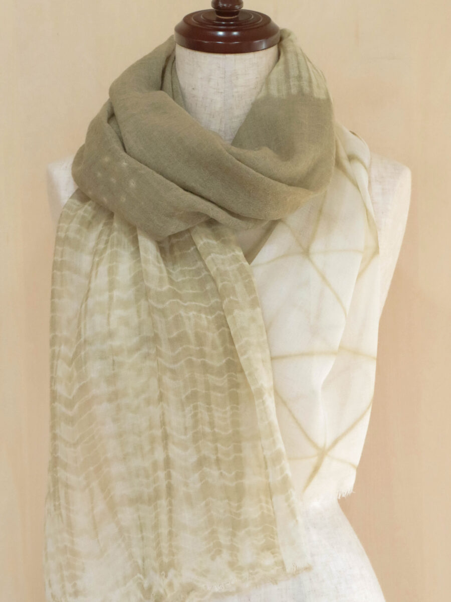 内 容:世界最古の染色技法の一つである絞り染め。この講座では、板締め絞りをはじめ、布の絞り方と、天然染料の染め方を学びます。ウールのスカーフ(55×180cm)に、それぞれデザインを考えて布を絞り、植物から染められる5つの色から、お好きな色を選び、染め上げていきます。絞り染めの「染み込む」ことでできる滲みは偶発の美とも言えます。思考と偶発が織りなす、模様の世界をぜひお楽しみいただけたらと思います。