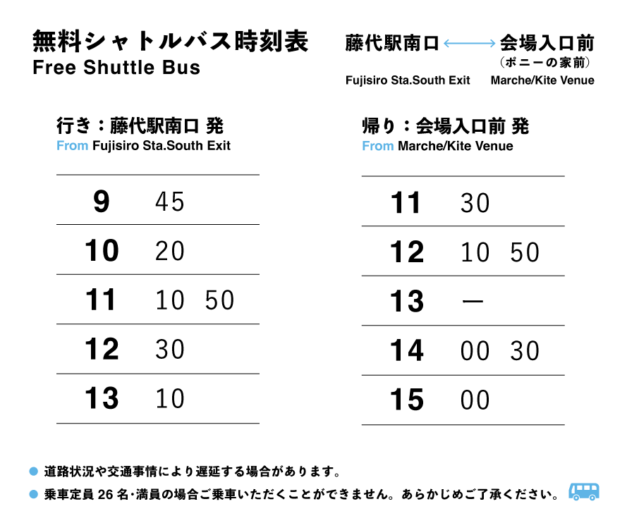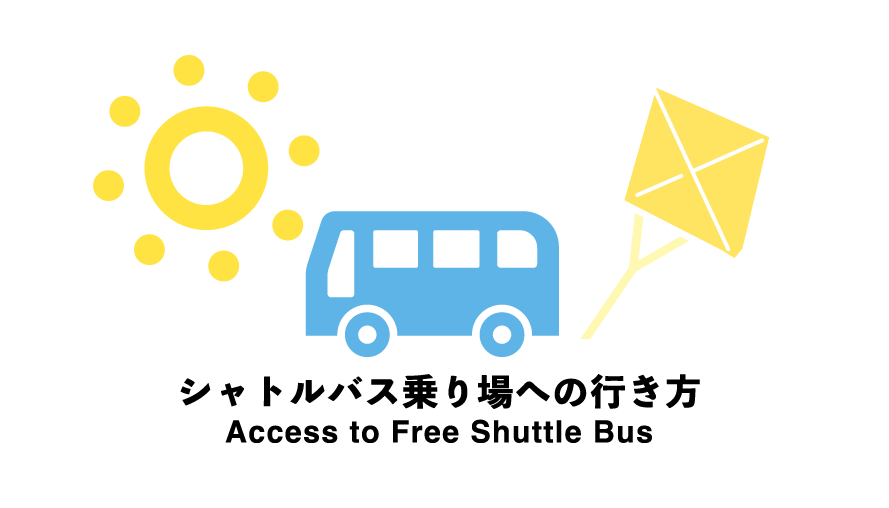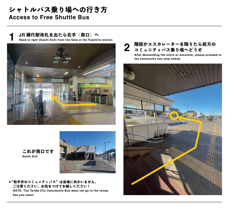 「ひだまりのひマルシェ&大空凧プロジェクト 高須で空あそび」会場へ、公共交通機関でお越しになるみなさまへ藤代駅改札からシャトルバス乗り場へのご案内です。